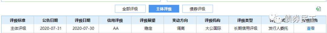根據wind最新的公開材料,中國第一重型機械股份公司的主體信用評級在2020年7月30日正式上調至AA,評級機構為大公國際。