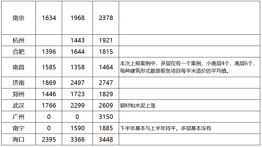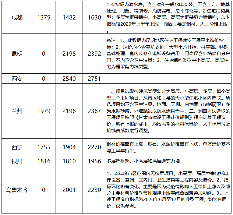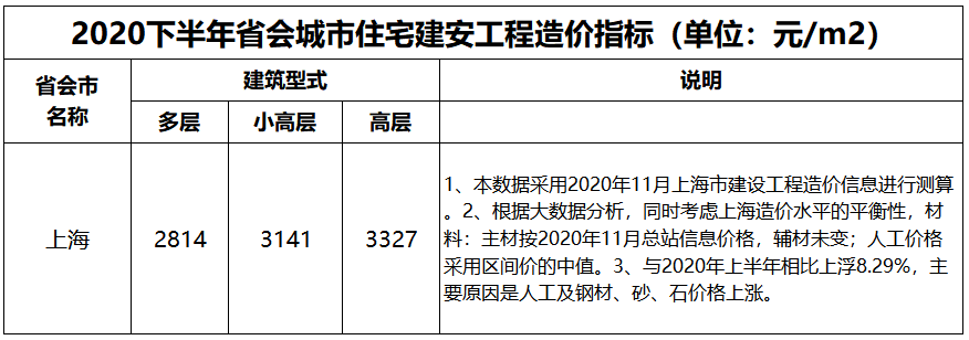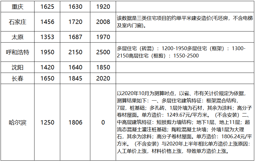 “2020下半年全國省會住宅建安成本”一覽表,全網最新建安成本統計!