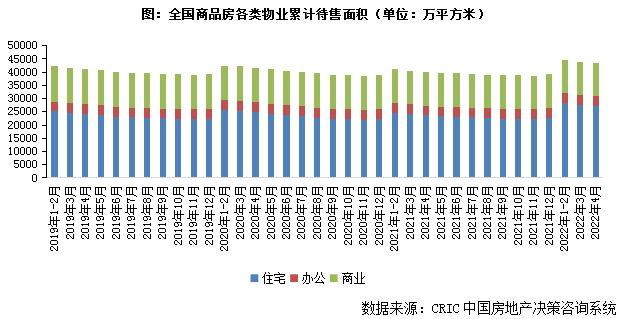 廣義庫存延續上月微降態勢,2022年4月末達383526萬平方米,較上月回落0.14%,同比上漲2%。主要源于全國疫情多地散發,部分城市土拍延遲,4月份全國土地市場成交規模仍舊處于歷史低位,同比去年同期有明顯的差距,加之各地區堅持“保交付、保民生、保穩定”,積極推動前期停建緩建的房地產項目復工復產,推進在建項目的建設,使得未開工地塊量維持穩中有降。