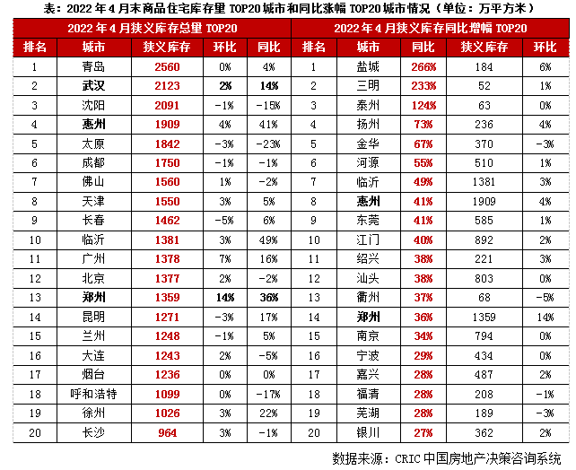 附表1:百城2022年4月末商品住宅庫存量和同環比變動情況(單位:萬平方米)(略)