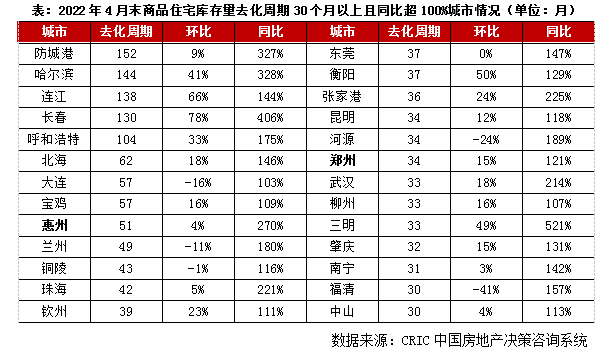 附表2:百城2022年4月末商品住宅庫存量去化周期和同環比變動情況(單位:月)(略)