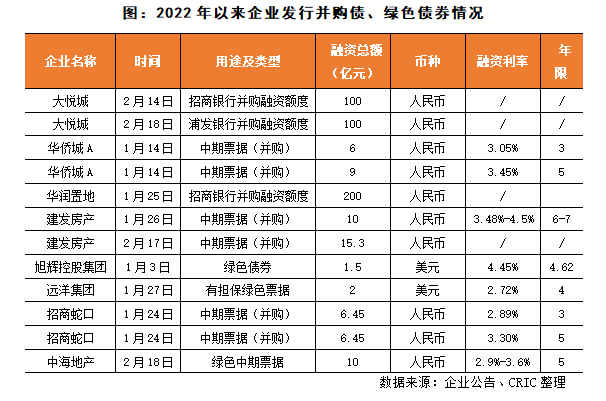 特別值得注意的是,在保障性租賃住房貸款、并購貸款等多種融資方式受支持的情況下,有部分房企積極拓展自身融資渠道,發行了綠色債券、并購票據、住房租賃公司債。招商蛇口、建發地產、華僑城等多家國資房企成功發行并購債。此外,旭輝控股、遠洋集團、中海地產等發行綠色債券也進一步拓寬了企業的融資渠道。