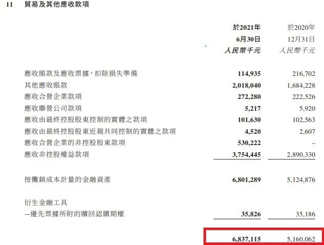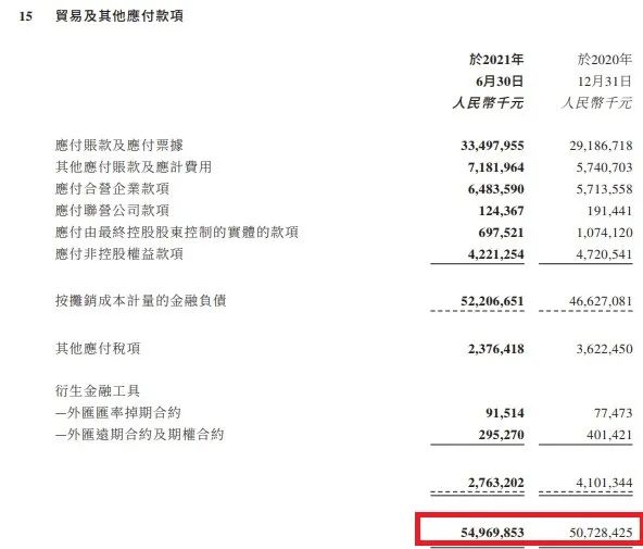 同時,應付的也從2020上半年的500億元出頭,增長至2021年同期的小550億元。如下圖,我們看具體結構,也很有意思。