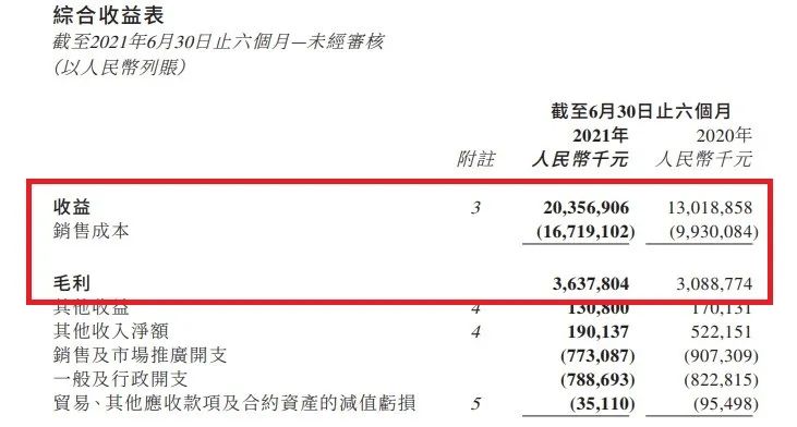 2020年同期銷售成本不到100億元,2021上半年增長至167億元出頭——銷售成本的支出增速,顯然高于營收增速。