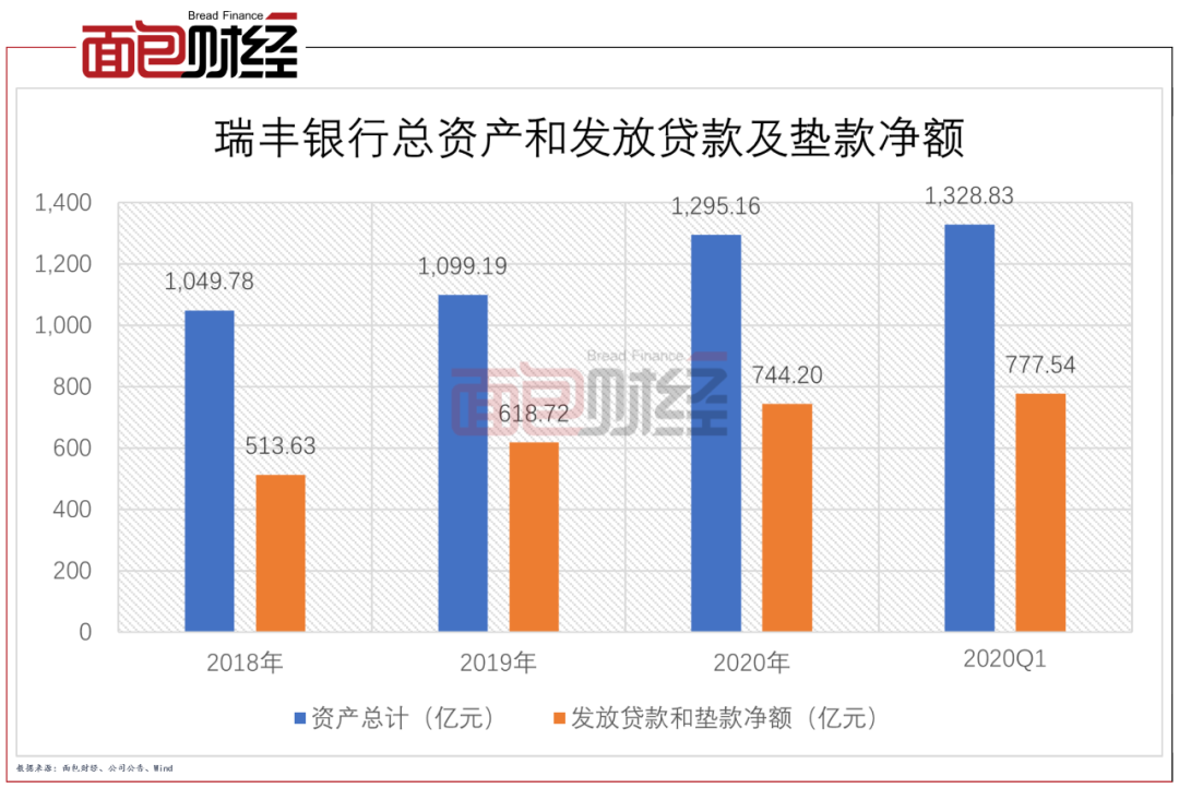截至2020年末,瑞豐銀行的總資產為1295.16億元,較上年末增長17.83%。2021年一季末,該行的總資產已達1328.83億元。資產規模的不斷擴大,與該行增加信貸投放有直接關系。