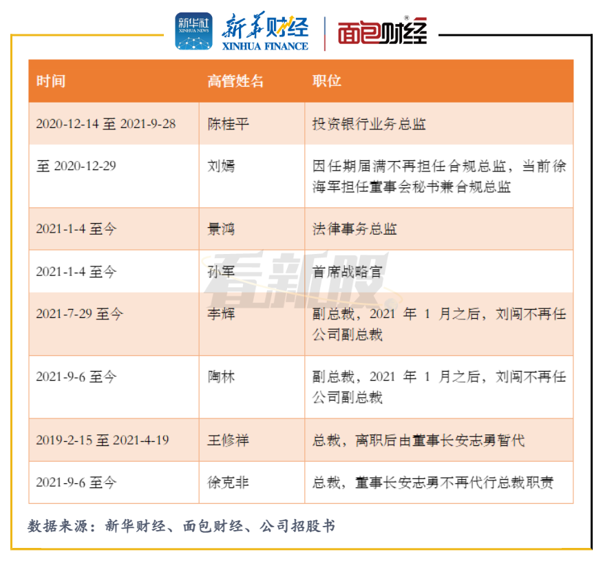圖1:2020年年底至今渤海證券高管人員變動情況