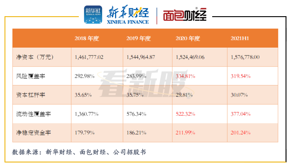 圖3:2018年至2021H1渤海證券凈資本及主要風控監管指標