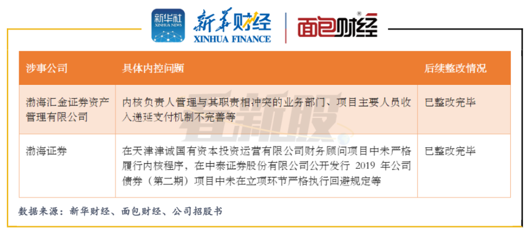 招股資料顯示,2020年11月,渤海證券及其子公司曾就投行業務的內控不完善收到警示函。