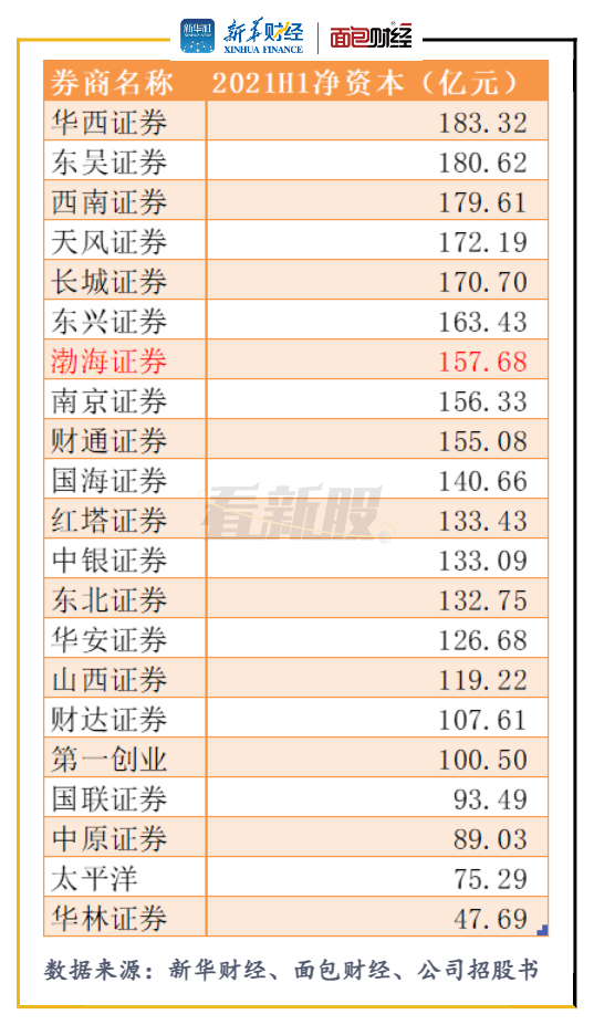 圖6:截至2021上半年末渤海證券及凈資本規模后20位的上市券商
