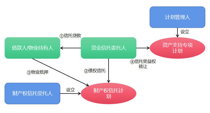 承租人→物業(yè)持有人收款賬戶→監(jiān)管賬戶→資金信托賬戶→財產(chǎn)權(quán)信托賬戶→上清所