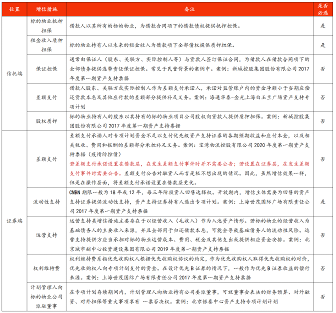 CMBN產(chǎn)品的增信措施方面設(shè)置非常全面,尤其是在外部增信措施,涵蓋了不動產(chǎn)抵押、股權(quán)質(zhì)押、應(yīng)收債權(quán)質(zhì)押、連帶責(zé)任保證/差額補足和流動性安排等多種方式。
