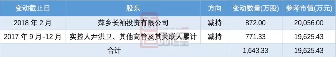 另外,根據(jù)上市公司于2018年1月1日披露的股東減持計劃,萍鄉(xiāng)長袖投資有限公司計劃自公告披露之日起15個交易日后不超過6個月內(nèi)減持其持有的公司股份2484.18萬股,占公司總股本的5.97%。公開信息顯示:該計劃披露之后到目前,其減持股份數(shù)量約872萬股,減持計劃尚未實施完畢。