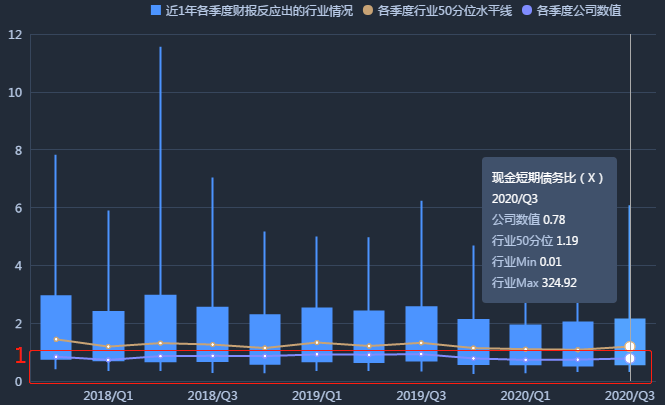 目前綠地控股是唯一一家“三道紅線”全踩的國企(截止2020年9月30日,公司的剔預資產負債率為82.38%,凈負債率為183.45%,現金短債比為0.78,“三道紅線”全踩中,并且有2個指標相較于年初指標更加惡化)。如下圖所示,綠地控股的現金短債比一直處于行業低位,短期償債能力較弱。