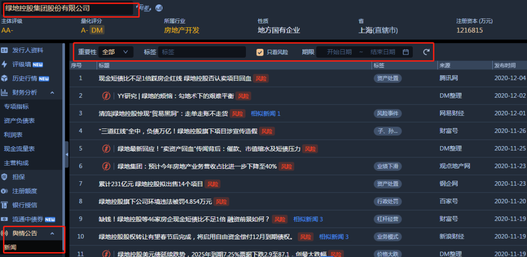 更多綠地控股的輿情新聞可以在DM終端上查看,可以篩選重要性、標簽、風險和期限哦~