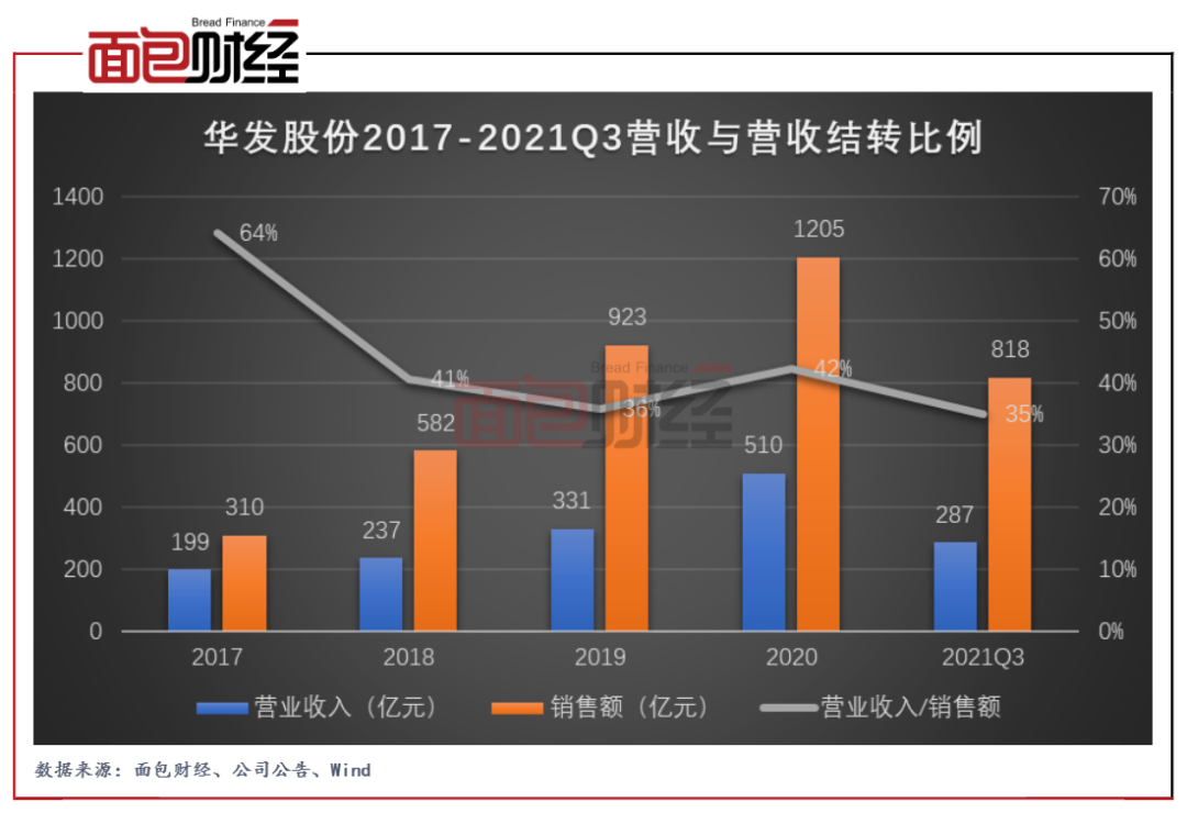 圖2:華發(fā)股份2017-2021Q3營收與營收結(jié)轉(zhuǎn)比例