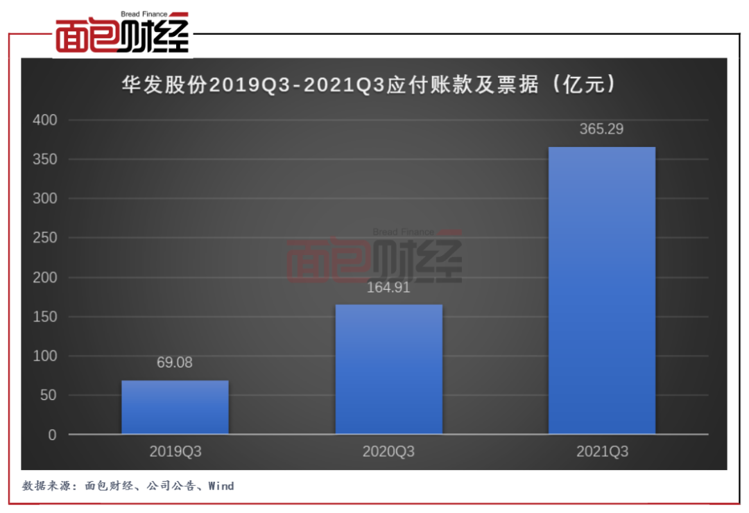 圖3:華發(fā)股份2019Q3-2021Q3應(yīng)付賬款及票據(jù)