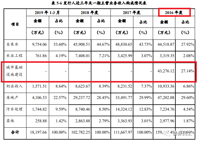 但是需要關注的是,在2016年及以前年度,春華水務還承擔城市基礎設施建設業務,主要是負責東客站站前廣場及地下綜合體工程和金橋污水處理廠及管網工程項目,這兩個項目已經在2016年結束,此后發行人不再承擔城市基礎設施建設業務。