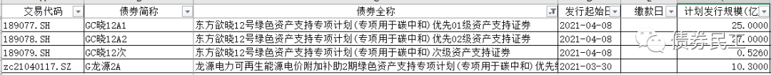 3、通過資產支持證券發行的碳中和債共4只,債券發行規模為62.826億元,發行人為中國東方資產管理股份有限公司和龍源電力集團股份有限公司。
