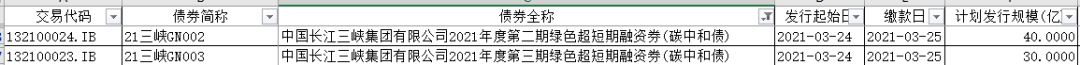 5、通過超短期融資券發行的碳中和債共2只,債券發行規模為70億元,發行人均為中國長江三峽集團有限公司。