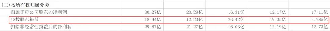 如上圖杠桿地產看到東方財富數據顯示,從2018年起,濱江集團的少數股東損益開始翻倍增長。2018-2021年分別為19.35億元、23.42億元、12.20億元、18.94億元。其中2018、2019年其少數股東損益甚至高于歸母凈利潤。