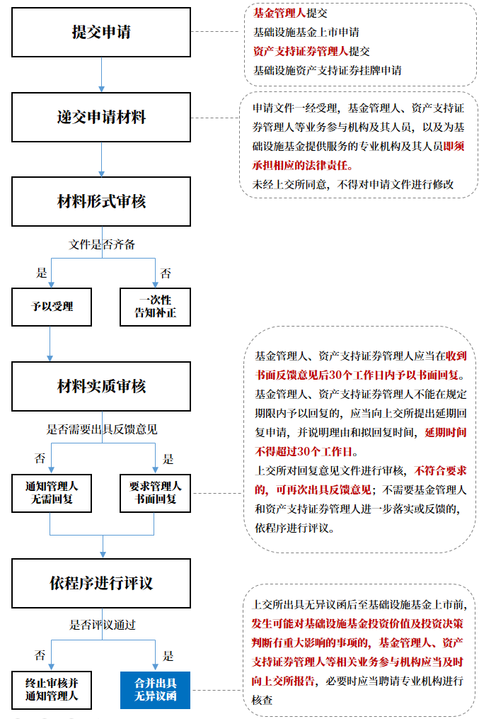 上交所主要在業(yè)務(wù)辦法第二章“申請(qǐng)條件與確認(rèn)程序”對(duì)公募REITs的基本審核程序及相關(guān)材料要求進(jìn)行了明確, 該部分主要體現(xiàn)出兩個(gè)特點(diǎn):