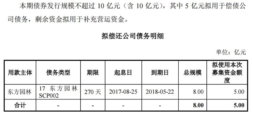 而此次發行遇冷的“18東林01”債券,原計劃發行規模不超過10億,其中 5 億元擬用于償債公司即將到期債務,剩余資金用于補充營運資金。