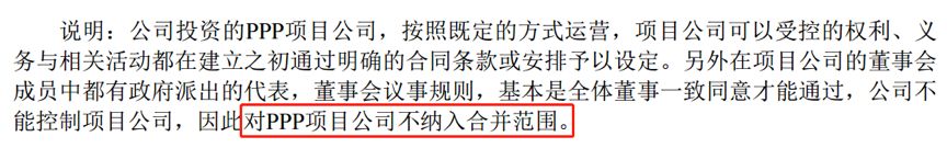 而東方園林在2017年年報中披露,對于PPP項目公司不納入合并范圍。以下為相關截圖: