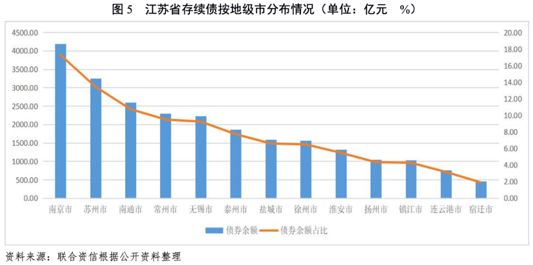 江蘇省作為國內城投債存量規模最大的省份,發債城投企業數量最多,蘇南與蘇北地區發債城投企業主體信用水平分化較為明顯。