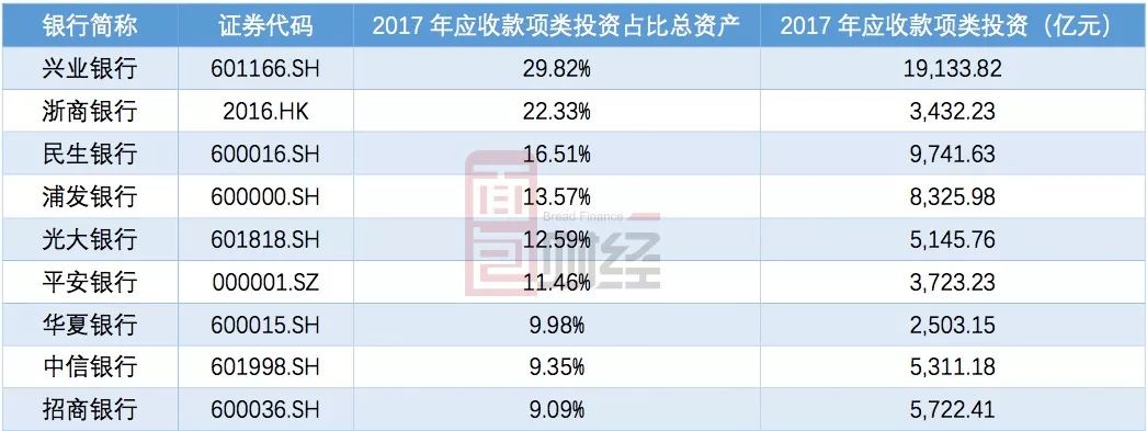 不過,即便是減少了,浙商銀行應收款項類投資占總資產的比重在9家上市股份行中仍處于高位,僅次于興業銀行: