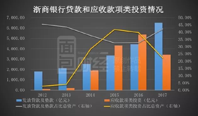 在監管層加大對非標資產的監管下,2017年浙商銀行的應收款項類投資終于下降至3432.23億元,同比驟減36%。