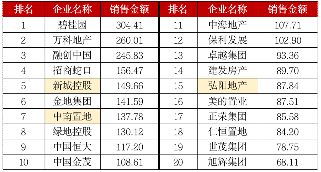 備注:標黃為房企發家地