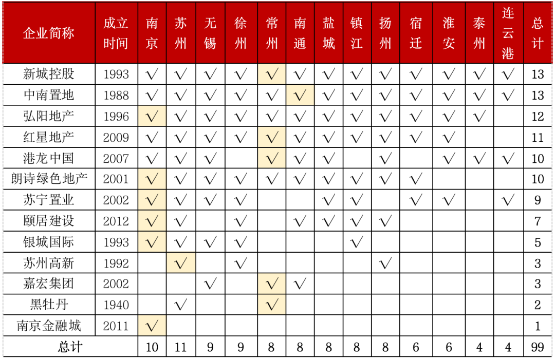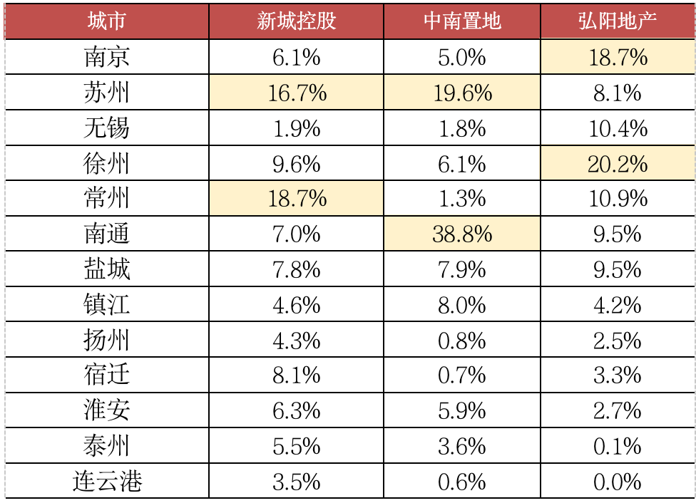 備注:標黃為蘇系本土房企,數據覆蓋13個地級市
