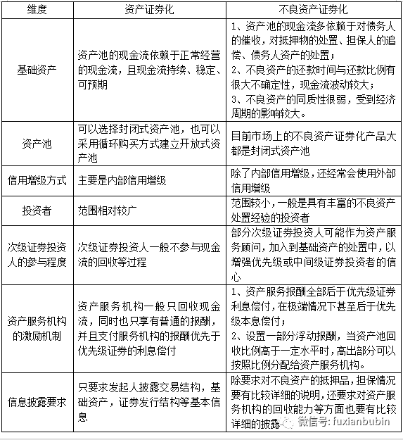 (一)不良資產(chǎn)證券化產(chǎn)品與資產(chǎn)證券化產(chǎn)品區(qū)別