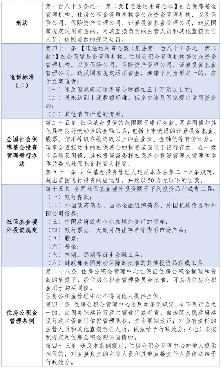 有些部門提出,負(fù)責(zé)經(jīng)營、管理保險資金、社會保障基金、住房公積金等公眾資金的單位,違反國家規(guī)定運(yùn)用資金的,將會嚴(yán)重影響公眾資金的安全,影響社會穩(wěn)定,對情節(jié)嚴(yán)重的,應(yīng)當(dāng)追究刑事責(zé)任。法制工作委員會經(jīng)同有關(guān)部門研究,擬在刑法中增加規(guī)定:……對保險公司、保險資產(chǎn)管理公司、證券投資基金管理公司、社會保障基金管理機(jī)構(gòu)、住房公積金管理機(jī)構(gòu)等公眾資金經(jīng)營、管理機(jī)構(gòu),違反國家規(guī)定運(yùn)用資金,情節(jié)嚴(yán)重的,追究刑事責(zé)任。