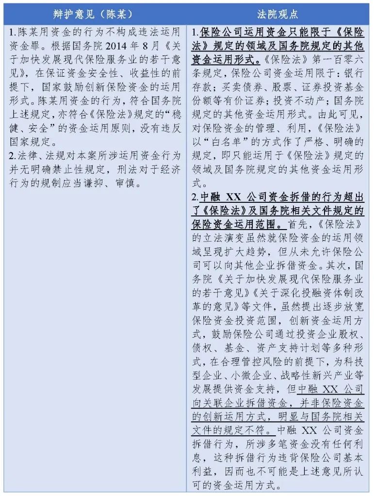 在“胡某某等案”中,法院判定中融XX公司向關(guān)聯(lián)企業(yè)資金拆借的行為超出了《保險法》及國務(wù)院相關(guān)文件規(guī)定的保險資金運(yùn)用范圍。