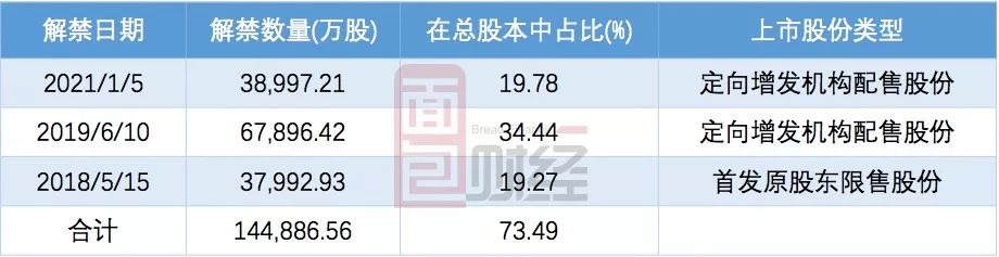 以當(dāng)前股價計算,未來14個月解禁股份總市值約120億元。其中,2018年5月份解禁總市值約43億。