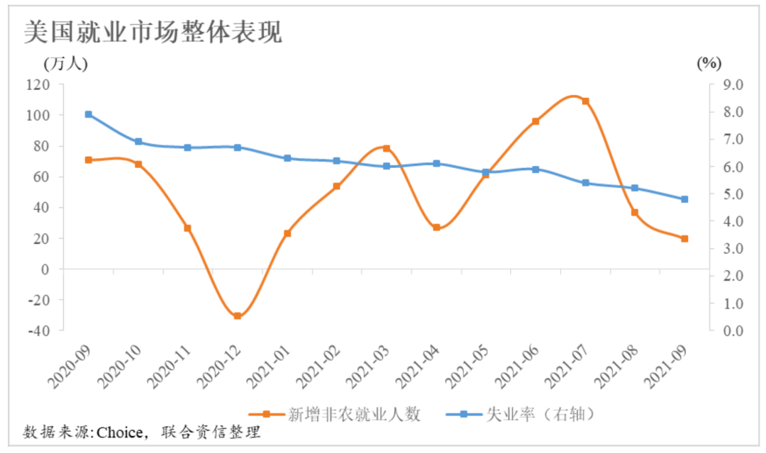 1.美國勞動力市場近期表現相對“扭曲”,盡管失業率呈現下降趨勢,但新增非農就業人數也連續兩月下降,不及市場預期水平。
