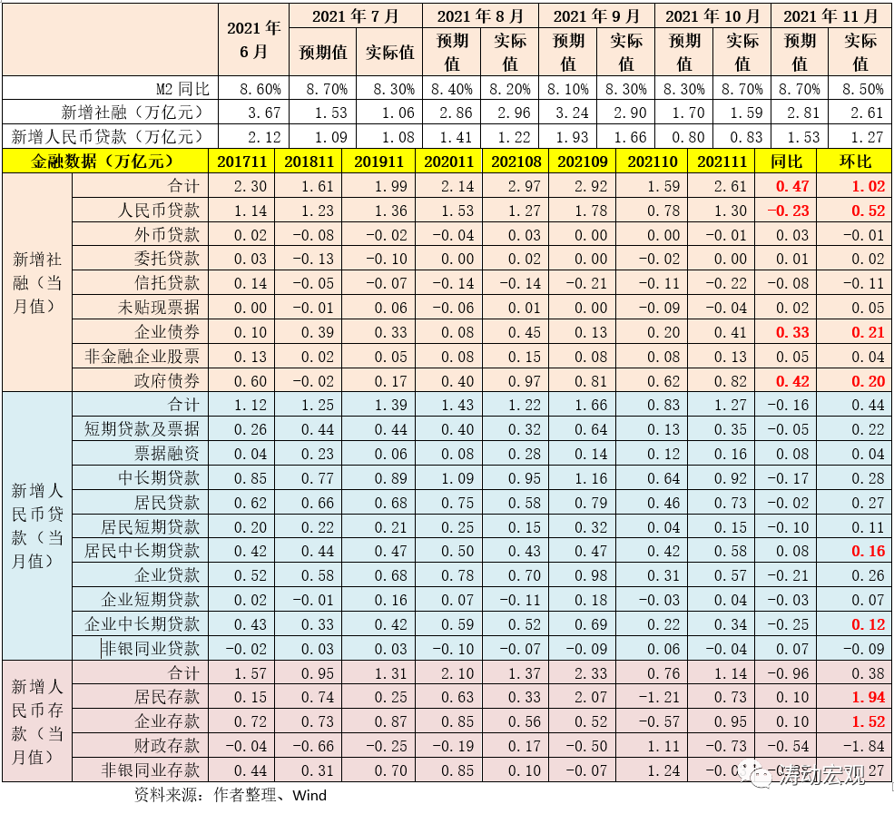(一)前面已經指出,11月人民幣貸款、企業中長期貸款等反映實體經濟融資需求的指標同比仍繼續萎縮,而社融、M2與人民幣貸款數值亦明顯低于預期,同比出現多增的指標主要有居民中長期貸款、企業債券、政府債券與票據融資,經濟基本面實際上并沒有好轉。