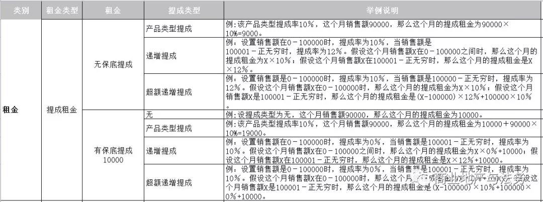 2、提成租金(也稱為:扣率租金、扣點租金或抽成租金)