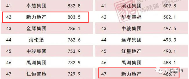 在中指、億瀚智庫排名中,新力地產按銷售金額全口徑排名在房企中分別為32位和34位。
