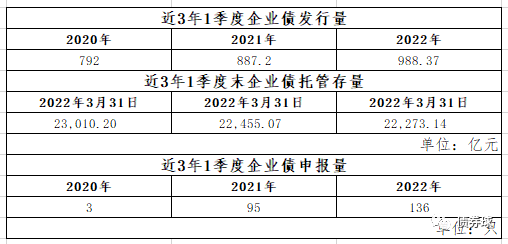 從數據來看,近3年1季度,企業債發行量總體呈上升態勢,但是絕對規模不大。結合近3年1季度末存量持續下降,可以得出,企業債發行規模要小于到期規模。