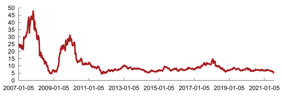 備注:1)恒生中國內(nèi)地地產(chǎn)指數(shù)的推出主要是為了反映前10只市值最大、流通性最高,在香港上市但主要營業(yè)收入來自中國內(nèi)地的房地產(chǎn)股票表現(xiàn)。當(dāng)前成分股共10只,分別為:中國金茂、中國海外發(fā)展、世茂集團(tuán)、龍湖集團(tuán)、華潤置地、龍光集團(tuán)、碧桂園、中國恒大、碧桂園服務(wù)、融創(chuàng)中國