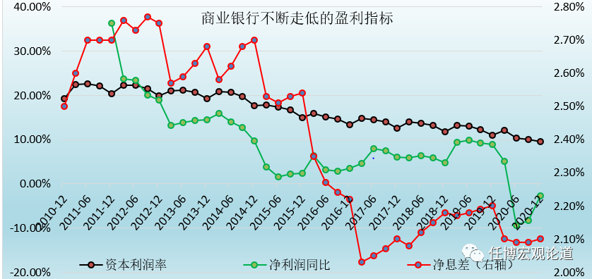 2、同樣是2010年以來,商業銀行的資本利潤率亦由最初的20%以上大幅下滑至目前的10%左右,十年時間里下降約10個百分點。