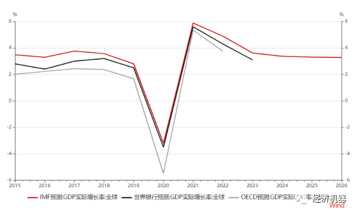 3)未來(lái)一兩年內(nèi),海外經(jīng)濟(jì)增速趨于回歸疫情前平均水平。主要機(jī)構(gòu)預(yù)測(cè)全球GDP增速將于2021年達(dá)到高點(diǎn)后逐步回落,2023年左右恢復(fù)至疫情前3.5左右的平均增速,不會(huì)出現(xiàn)急劇的放緩(圖5)。