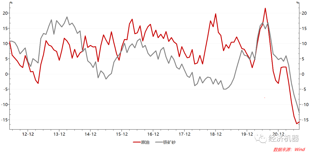 圖8、鐵礦石和原油月進(jìn)口量:5個(gè)月移動(dòng)平均同比