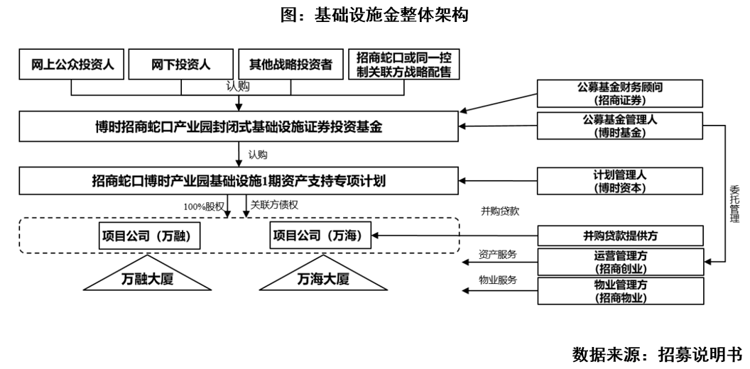 項目主要參與機構大都是央企招商局集團的下屬企業,租金收入確定性較高,如公募基金管理人為博時基金,專項計劃管理人為博時資本,基金托管人為招商銀行,外部管理機構為招商蛇口旗下的招商創業,財務顧問為招商證券及中信證券。