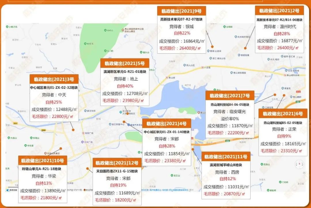 「二」 臨安宅地全線飄紅自持,最高達到40%自持,要知道臨安的限價是虛的,甚至是需要啟動中介代理的