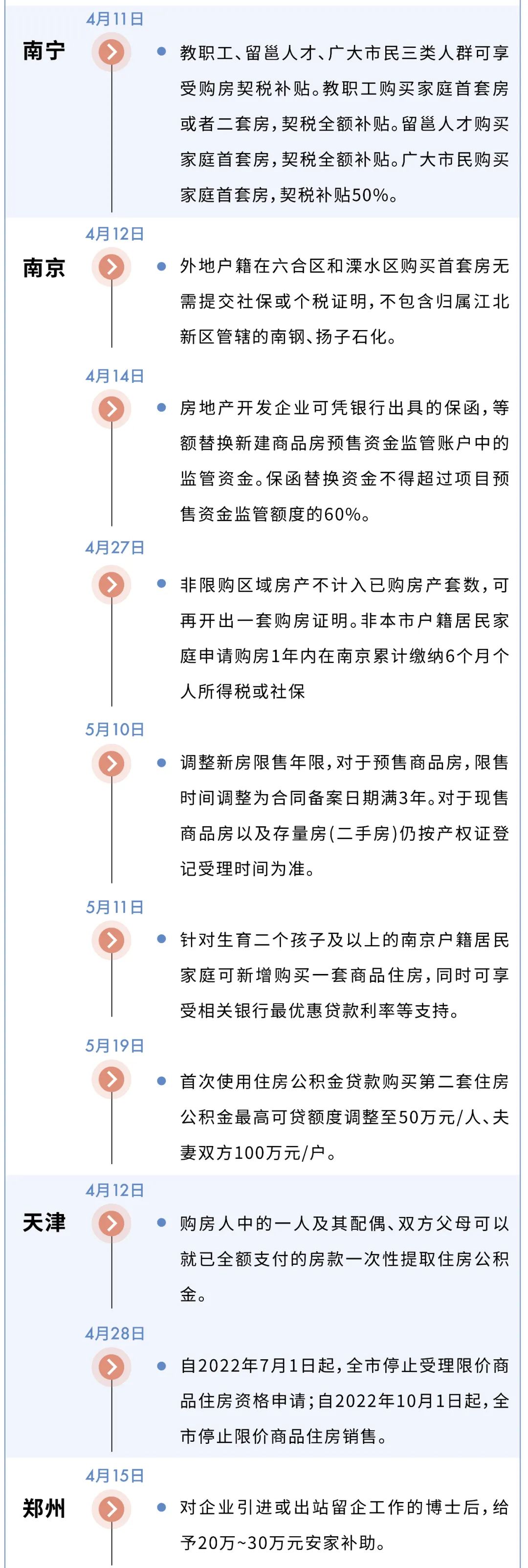 4月以來,南京至少發(fā)布6次樓市松綁政策試探政策底線,并于5月20日發(fā)布“南京二手房全面取消限購”的政策內(nèi)容,但僅維持半天,便被緊急叫停,這也是4月以來為數(shù)不多的政策“一日游”。
