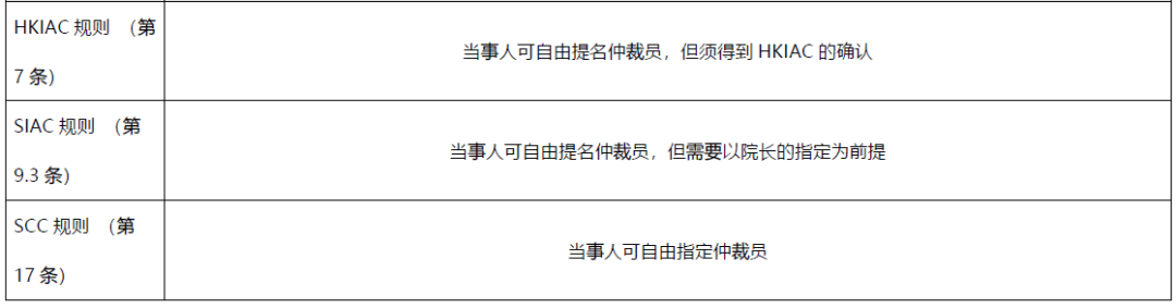 **表格中虛線上方的為我國內地仲裁機構規則,虛線下方的為我國香港特別行政區及國外仲裁機構規則。如未經特別說明,本文中所引用的仲裁規則均為該機構現行最新版本的規則。