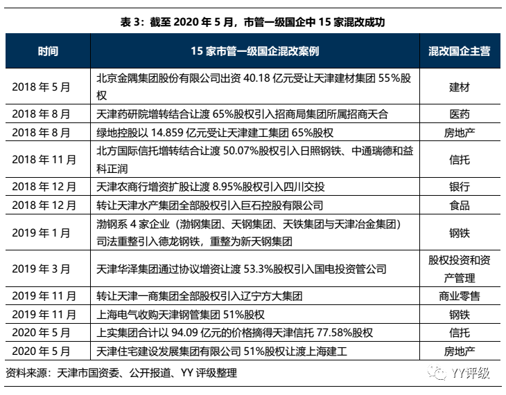 直到最近的2020年3月推出19家市屬集團的60戶精品國企混改項目。